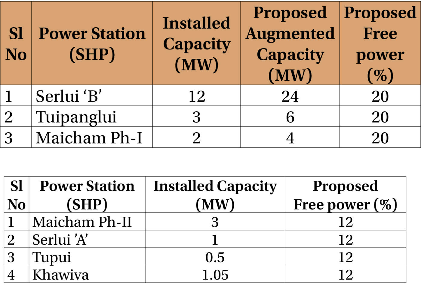 Heng an tlawh zawh vek hnu hian 12th April 2024-ah heng SHP-Serlui-B (12 MW), Serlui-A (1 MW), Tuipanglui (1 MW tia an ziah,3 MW tur zawk), Kau-Tlabung (3 MW), Maicham Phase-I (2 MW) leh Maicham Phase-II (3 MW) te chu kum 40 chhung enkawl an duh thu P&ED hnenah an thlen a. Chumi hnu 13th May 2024-ah Khawiva SHP (1.05 MW) pawh tihchangtlun belha enkawl an duh thu an thlen leh a ni.