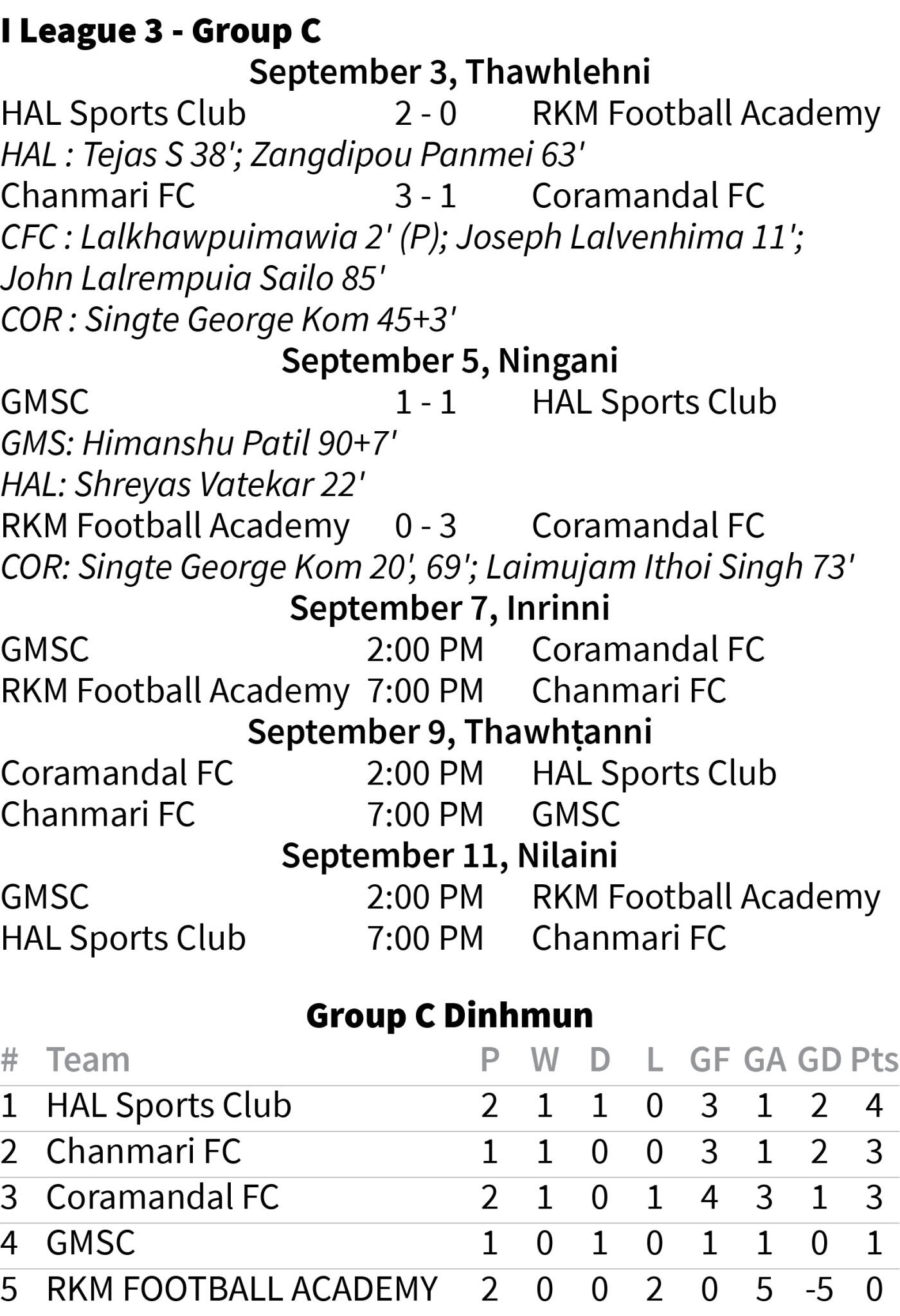 Hetihlai hian beiseina thar nei turin Coramandal hian Ningani zan khan RKM chu 3-0 ngawtin an sawp a, striker chhuanvawr George Kom chuan goal hnih khungin Ithoi Singh chuan goal khat a thawh ve bawk.
