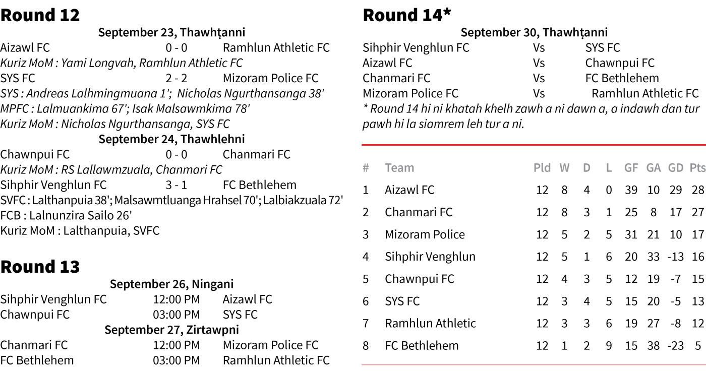 MPL aṭangin pariatna an relegate ṭhin a, FC Bethlehemin table mawngphah an chhuahsan theih tawh loh avangin an relegate. Nimin inkhelah Bethlehemin relegate loh tumin ṭan an khawh a, Sihphir Venghlun lakah Lalnunzira Sailo hmangin an pet goal hmasa hial.