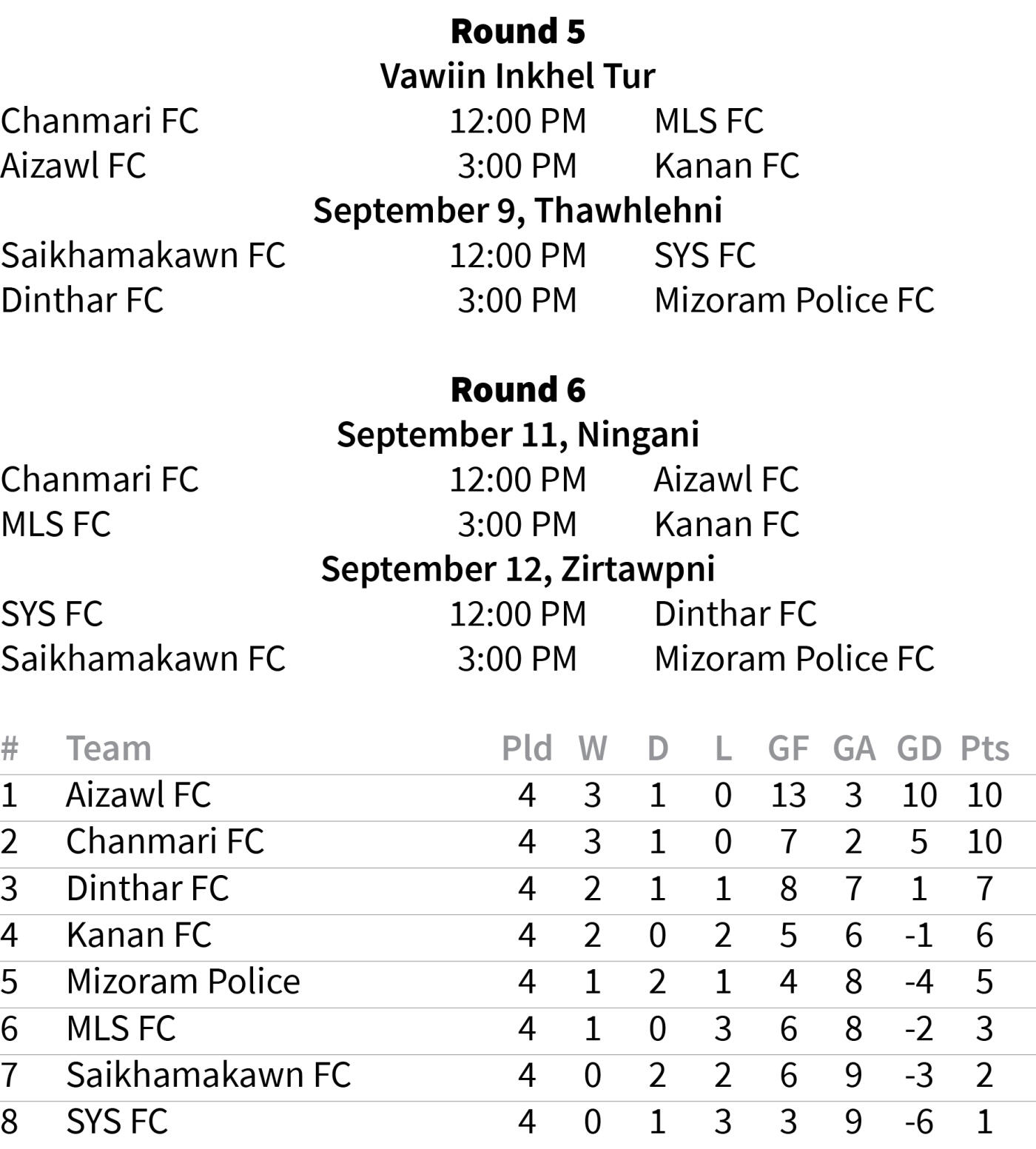 Kanan FC-in an match hnuhnung berah Chanmari FC an hneh lo a, I League club Aizawl FC an hmachhawn lehnghal dawn. Chawngthansanga hote hian semifinal khelh an tum a nih chuan vawiina point hlawhchhuah a pawimawh.