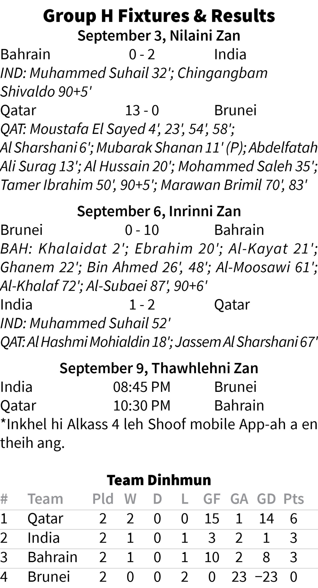 "Kan hmah Brunei an la awm a, kan sawp hrep chuan Asian Cup khel tura tlinna chance a la awm. Qatar (13-0) leh Bahrain (10-0) ten an sawp ve ve tawh a, kan sawp ve thei turah ka ngai," tiin Vanglaini a hrilh.