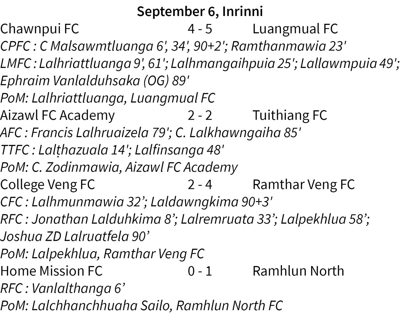 ADFA I Div League hi Mizoram State Sports Council-in an sponsor a ni a, ruahma dan chuan vawi khat ṭheuh an inkhel kual ang a, chumi hnuah a sang paliten semifinal an khel ang. League round bika a sang ber tan lawmman a awm dawn bawk.