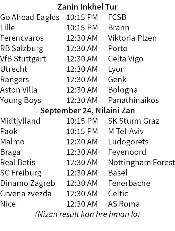 Zanin dar 12:30 hian Unai Emery enkawl Aston Villa hian Europa League khel turin Italian club hi an lo mikhual dawn a, season hmasa pawh khan Champions League-ah an lo inhmachhawn tawh - Villa hian 2-0 in hnehna an chang.