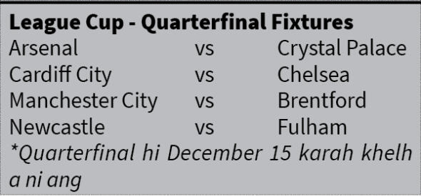 League Cup quarterfinal-a inhmachhawn tur team a hriat nghal a, City hian Brentford an hmachhawn dawn - Cardiff City chu Premier League club ni lo zinga la dam awmchhun an ni tawh.