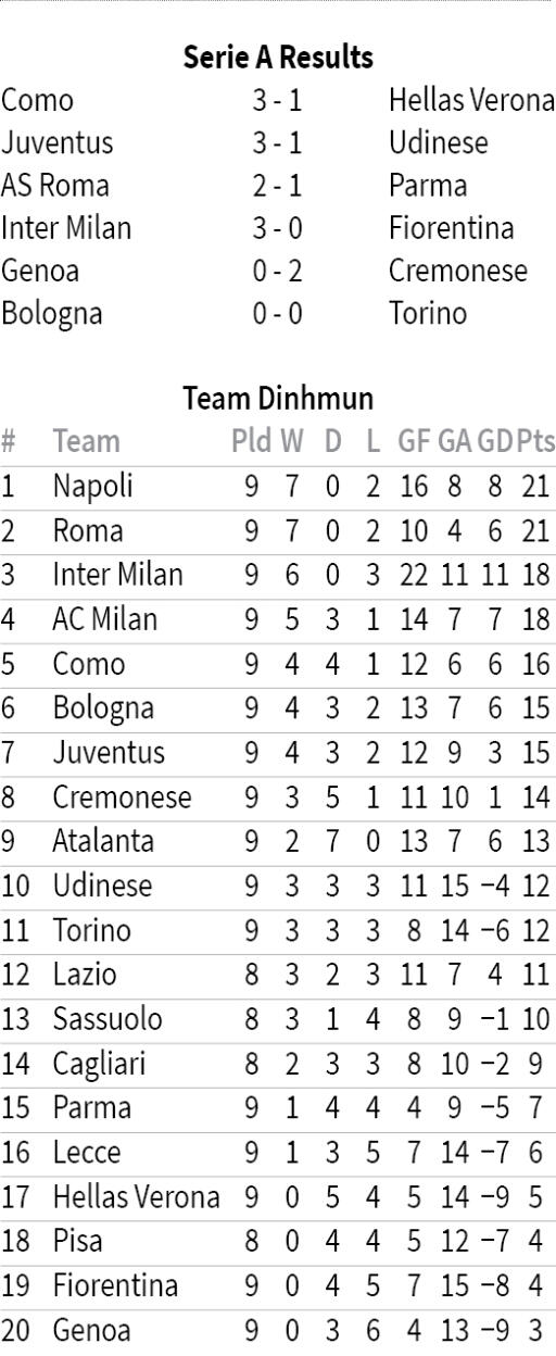 Inter Milan hi pathumna an ni mek a, an chungah AS Roma leh Napoli te an awm. Season hmasa khan Antonio Conte nauten an title an chhuhsak a, kuminah laklet ngei tumin thapui an thawh, nomawi inchuh boruak a sang chho dawn tih a chiang.