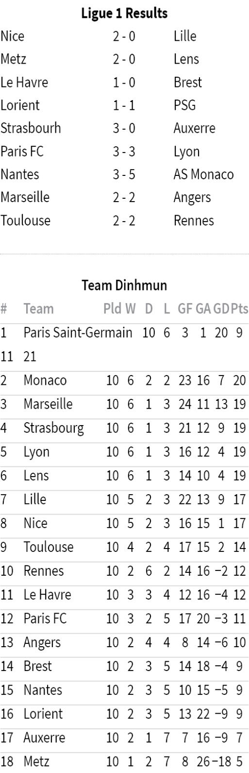 Chak zo lo mah se PSG hi Ligue 1 hmahruaitu an ni chhunzawm, anmahni hnaih bertu Marseille chu Angers nen 2-2 in an inhnehtawk. Nantes hnehtu AS Monaco chuan point 20 hmuin Paris club hnuaiah chiah an rawn kang chho a ni.