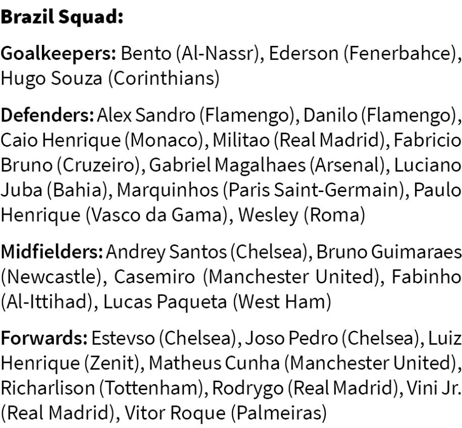 Brazil coach Carlo Ancelotti chuan kumina an match hnuhnung pahnih atan player a ko a, hming tarlan zingah Brazil tana goal khung tam ber Neymar chu telh a la ni lo.
