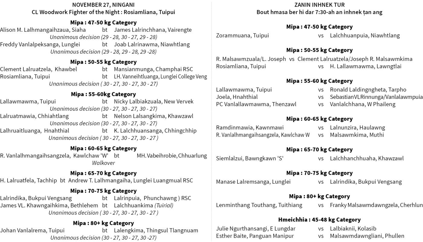Mizoram Boxing Association (MIZBA) buatsaih Sailo Agencies-MIZBA Mega Boxing 2025 chu R. Dengṭhuama Indoor Stadium, Mualpuiah chhunzawm a ni dawn a, zanin hian boxer en châkawm ber zinga mi Zorammuana (Valtea) a inlan dawn.