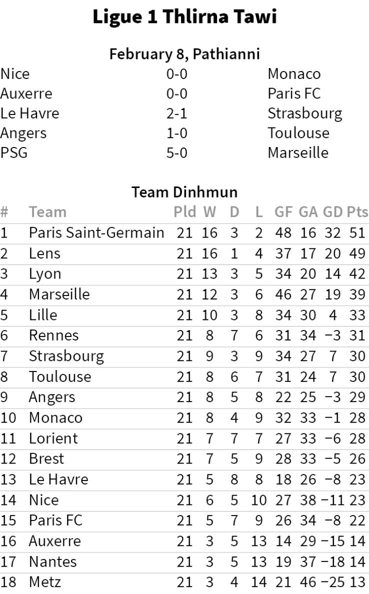 An chak leh tak avangin PSG-in table chung ber an luah chhunzawm a, point 51 hmuin anmahnin hnaih bertu RC Lens-in point hnihin an pha lo.