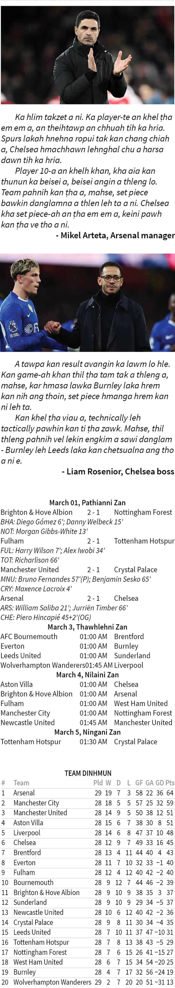 Premier League champion tum Arsenal hneh chu Chelsea tan a la harsa rih a ni e - kum 2026 chhunga a vawi thum nan Pathianni zan khan team pahnih an intawng a, hnehna changtu chu a ngai bawk a ni.