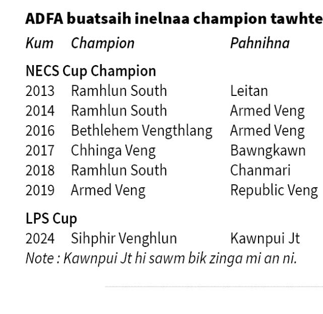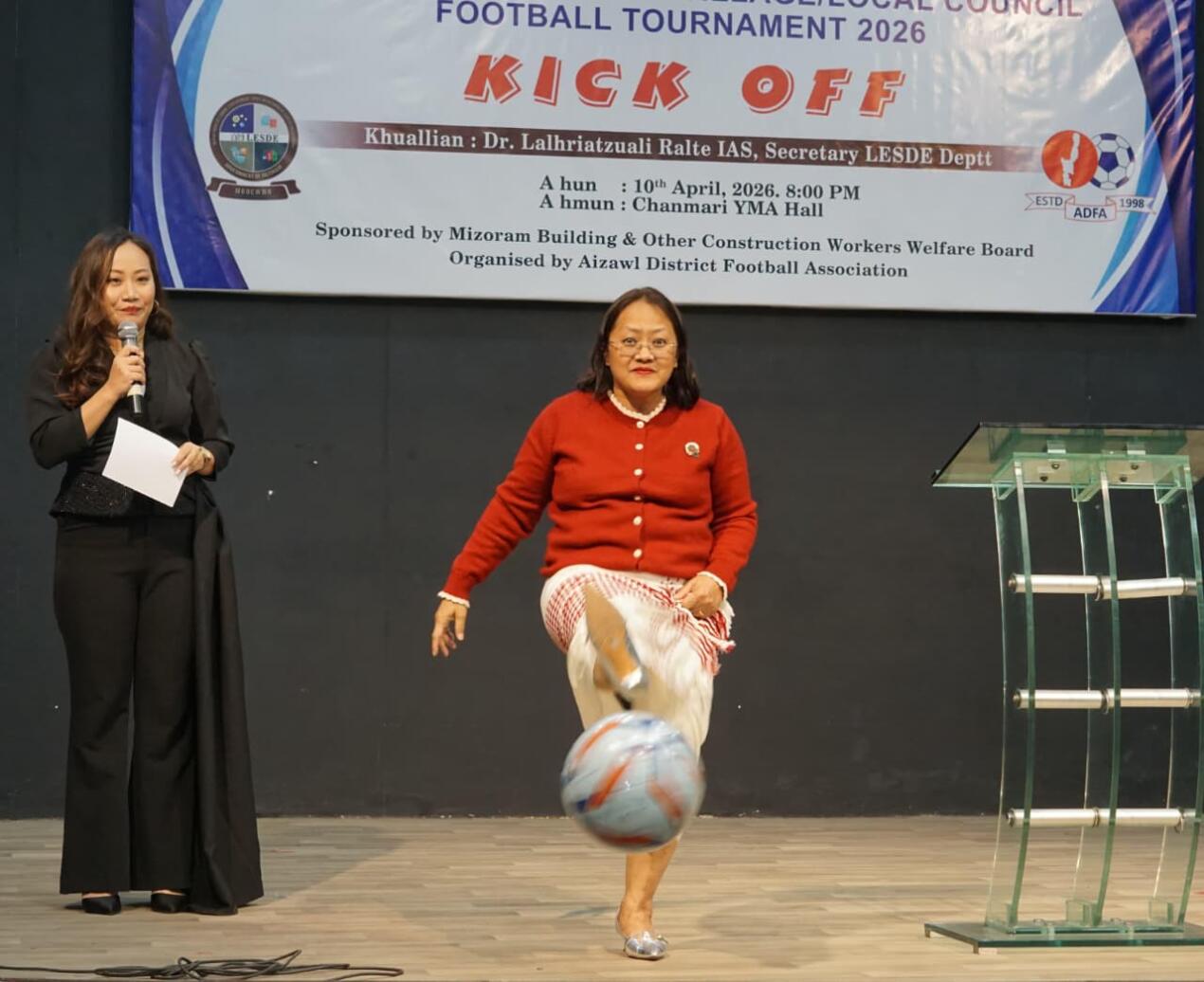 MBOCWWB 8th ADFA Inter Village/Local Council Football Tournament 2026 chu Chanmari YMA Hall-ah April 10, Zirtawpni zan khan LESDE Department secretary Dr Lalhriatzuali Ralte, IAS chuan a kickoff. Inelna hi Mizoram Building & Other Construction Workers Welfare Board (MBOCWWB) sponsor a ni a, Aizawl District huam chhunga veng leh khua inelna a ni.