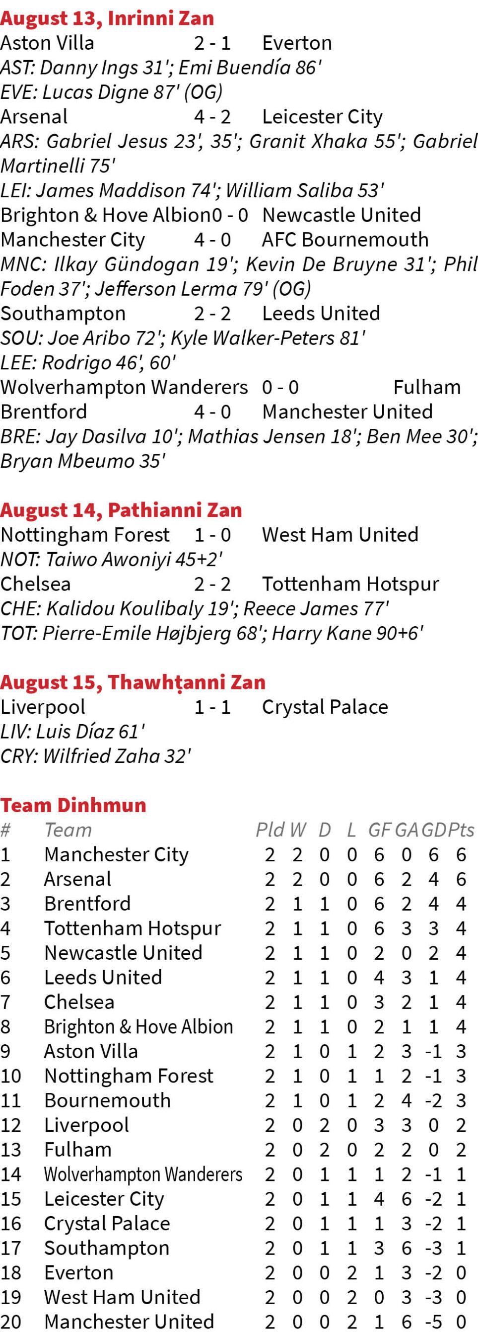 Premier League champion tura Manchester City nen inel ber tura ngaih Liverpool hian an league match hmasa pahnihah hnehna an la chang lo a, point hnih chiah an la hmu.