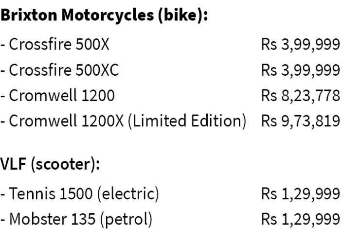 LZ MotoHaus-ah hian Austria company Brixton Motorcycles siam bike chi hnih leh Italy company VLF siam scooter chi hnih chu Mizo mipui lei theih turin chhawp chhuah a ni a; trip khatna leh trip hnihnaa lirthei 80 rawn thleng tur chu kar khat chhung velin booking a full nghal vek.