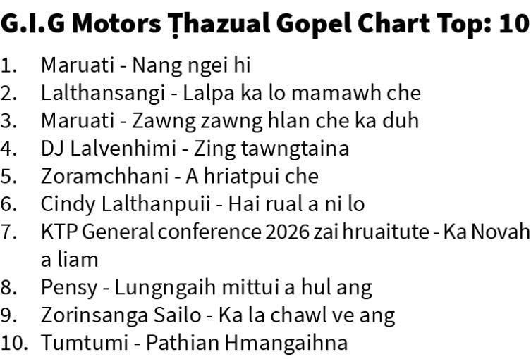 G.I.G Motors Ṭhazual Gospel Top 5-ah Maruati hla pahnih lang