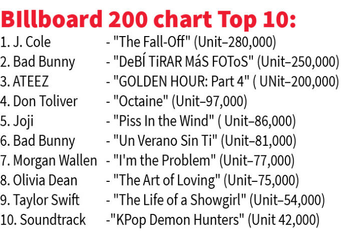 Billboard 200 chart-ah J. Cole album "The Fall-Off" aia mawi awm lo
