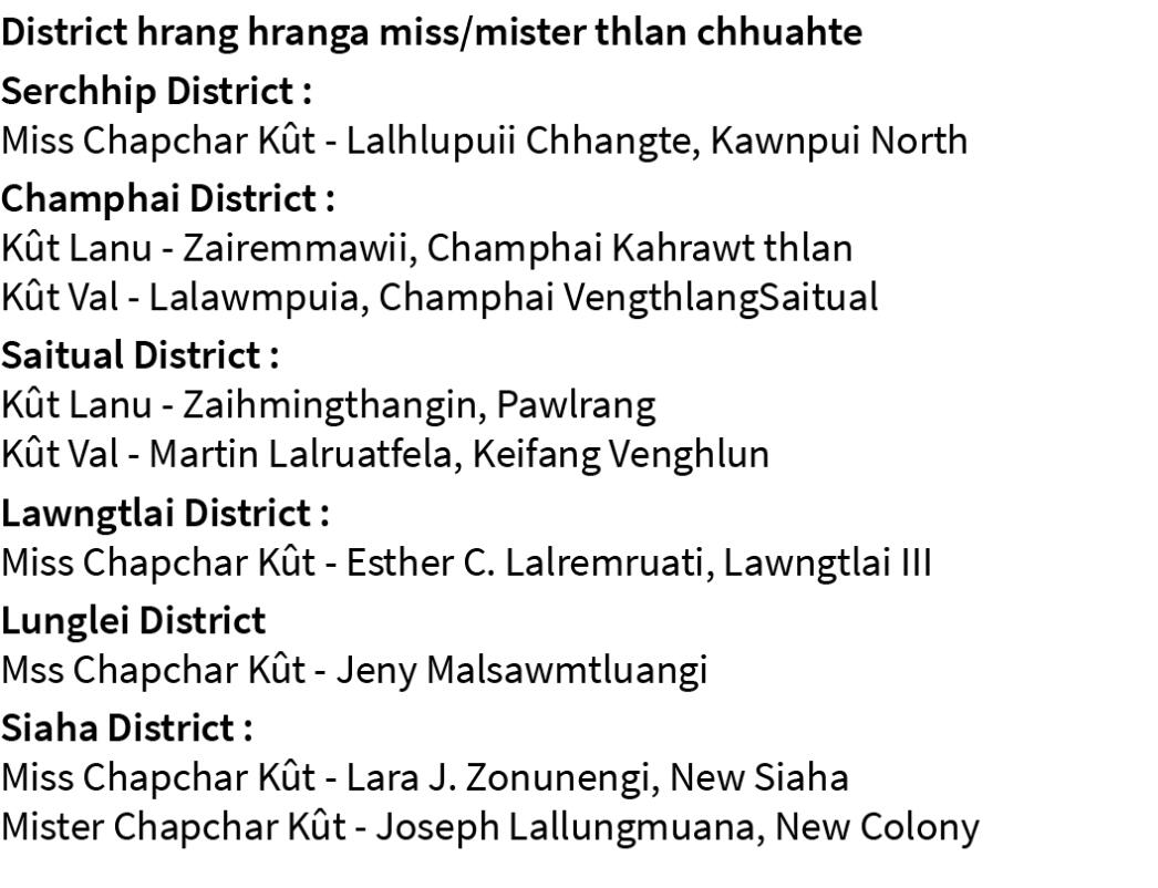 District hrang hrangah Miss/Mister Chapchar Kût thlang