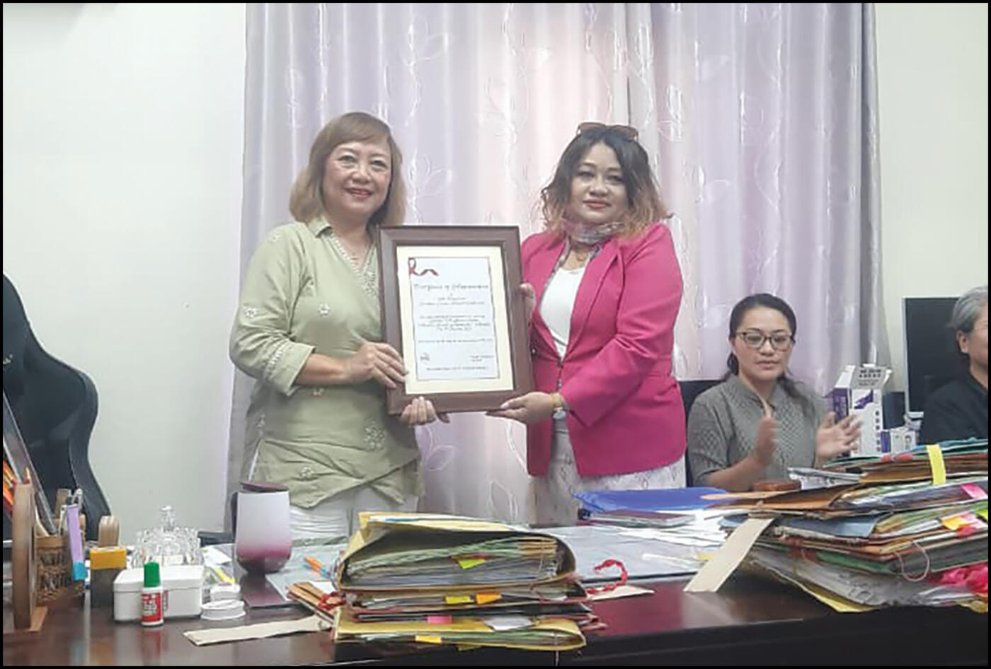 HIV/AIDS donaa thawh ṭhat vanga tun hnaia chawimawina dawngtu Vanlalruati hnenah Mizoram State AIDS Control Society project director Dr Jane Rinsangi Ralte chuan nimin khan MSACS hmingin lawmpuina a hlan.