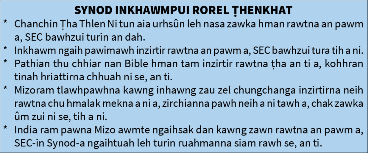 India-ah sakhaw zalenna a awm zel theih nan Synod-in hmalak an remti