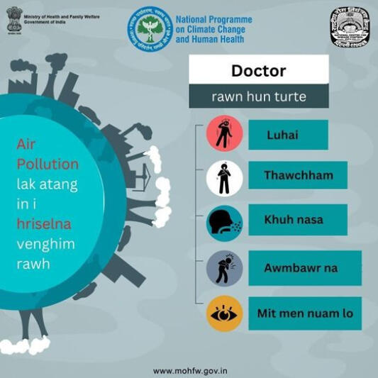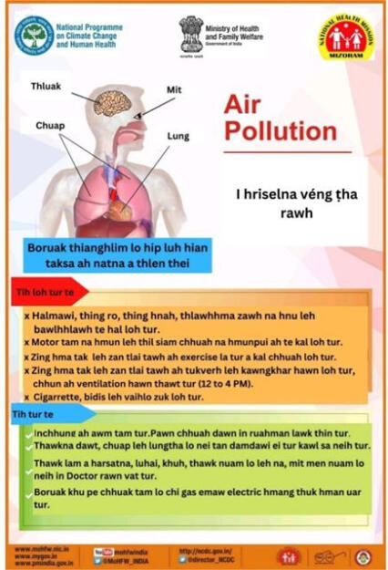 Health & Family Welfare department hnuaia National Programme on Climate Change and Human Health (NPCCHH), National Health Mission chuan boruak bawlhhlawh (air pollution) zual laia mipuite inven dan tur leh zawm tur a tichhuak a; taksain a mamawh tâwk leh khamkhawp tui thianghlim in uar turin a hriattir.
