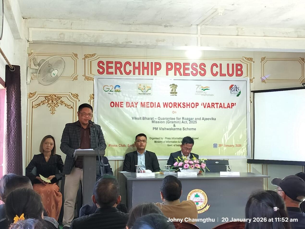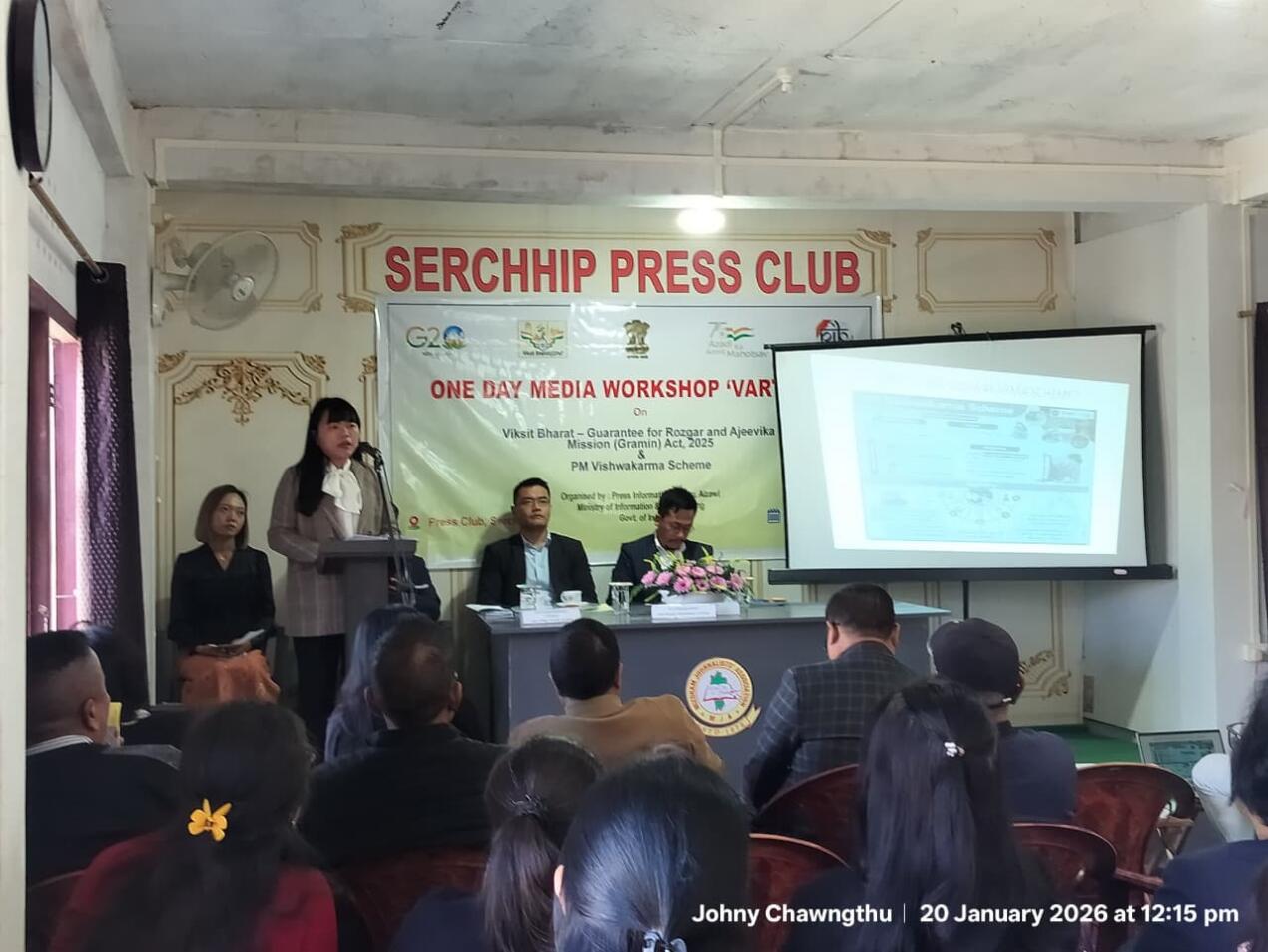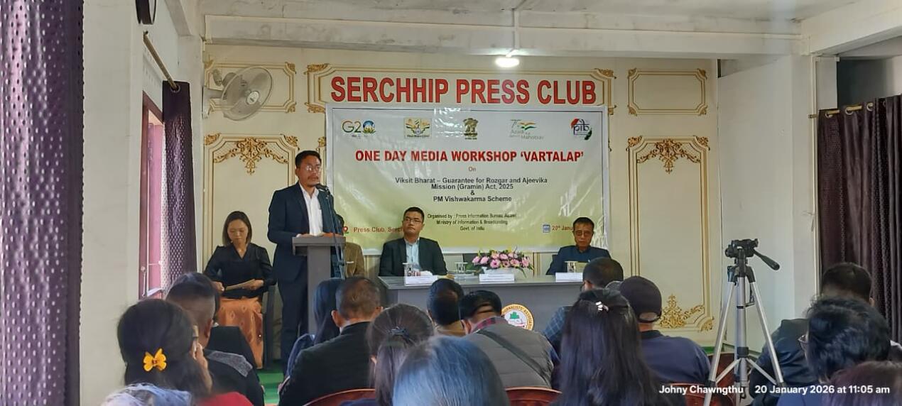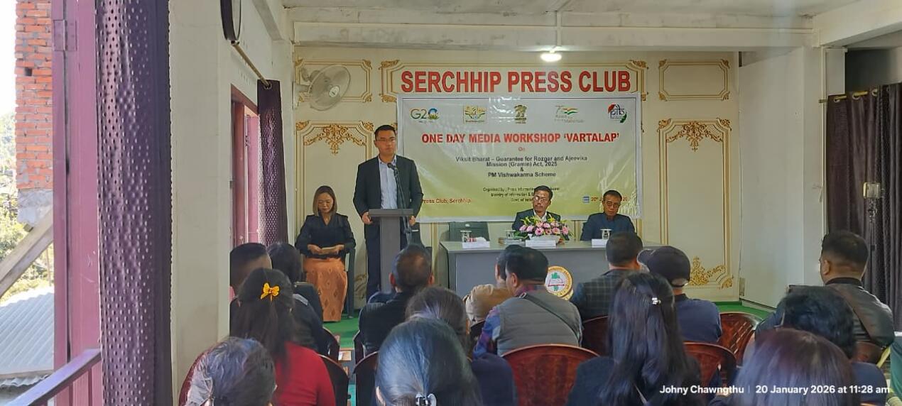 Ministry of Information & Broadcasting hnuaia Press Information Bureau (PIB), Aizawl chuan nimin khan Serchhip Press Club-ah chanchinbumite leh khawtlang hruaitute pualin Viksit Bharat - Guarantee for Razgor and Ajeevika Mission (Gramin) Act 2025 leh PM Vishwakarma Scheme zirhona VARTALAP an buatsaih.