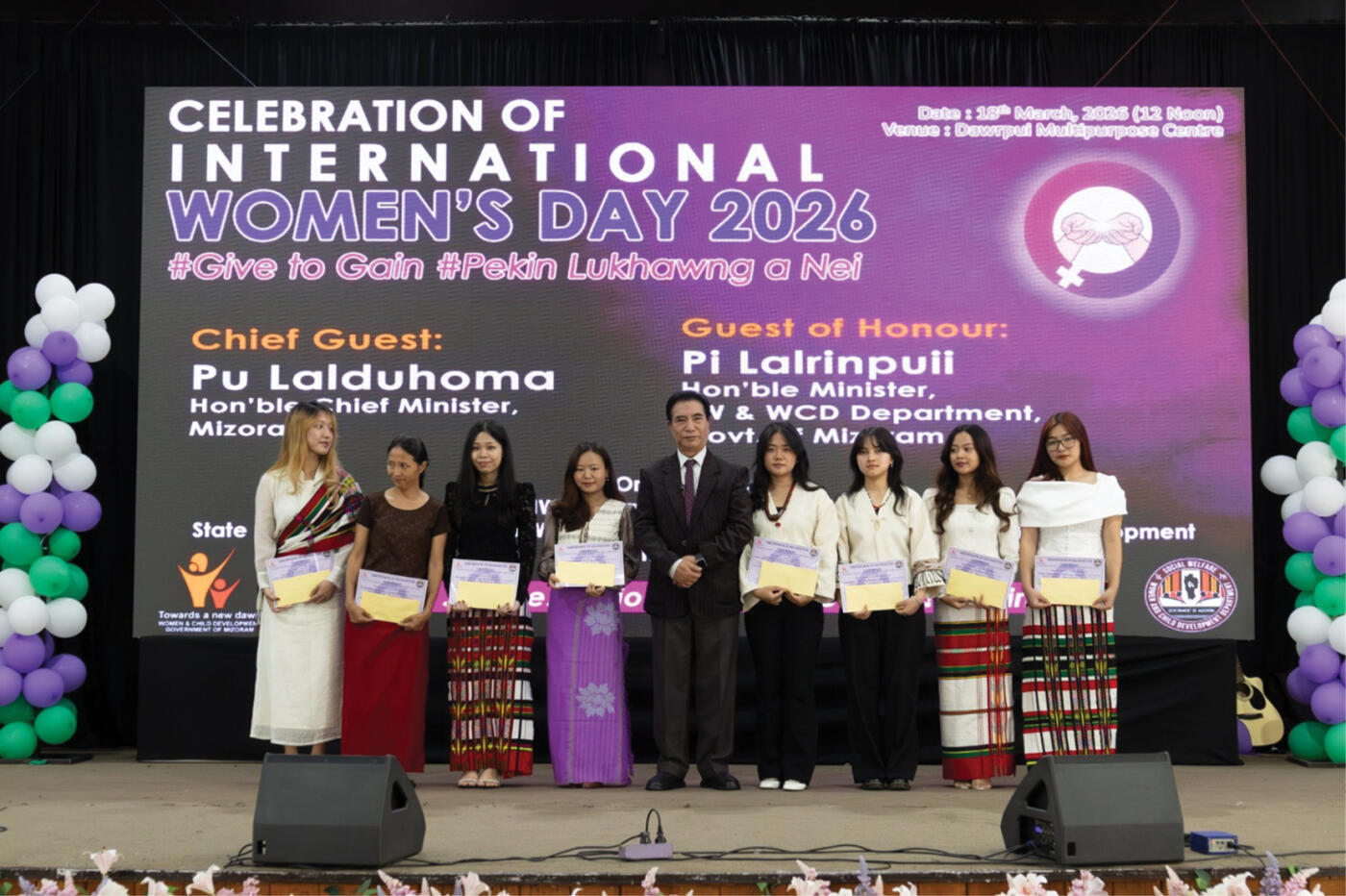 Nimin khan Dawrpui Multipurpose Centre-ah International Women’s Day hman a ni a, chief minister Lalduhoma leh Social Welfare minister Lalrinpuii ten an hmanpui. CM chuan, 'The Mizo Marriage & Inheritance of Property (Amendment) Bill, 2026' hmangin Mizo hmeichhiate dinhmun ṭha leh zahawm zawkah hlan kai a nih thu a sawi.