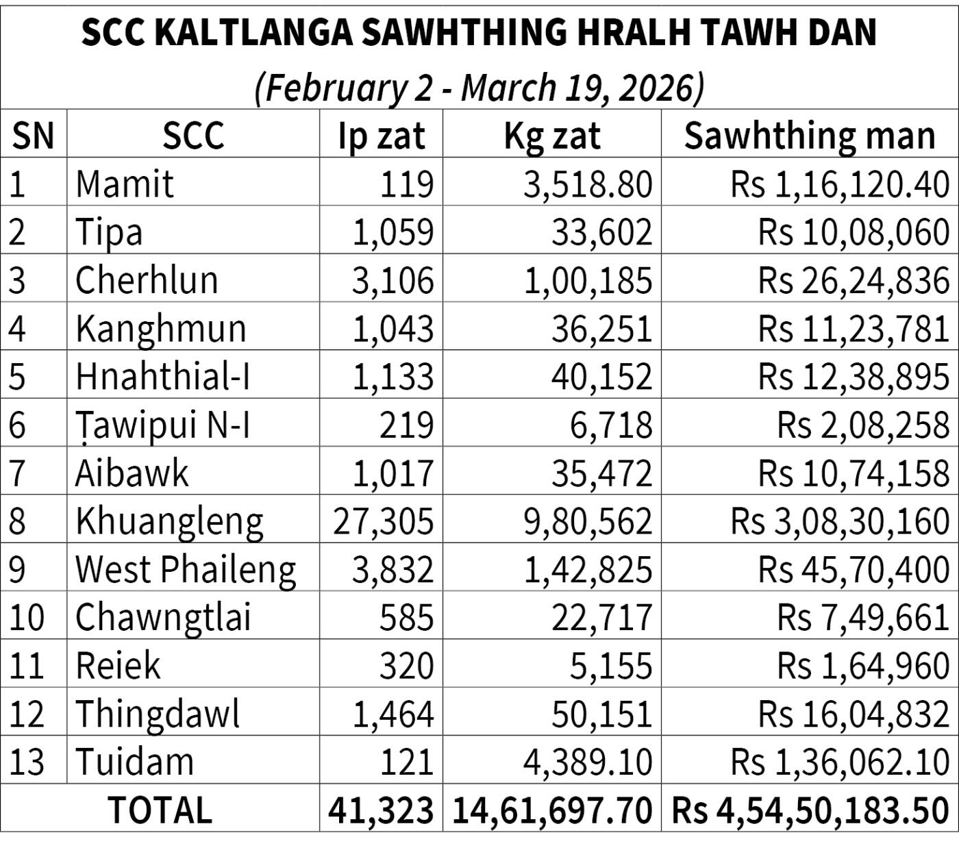 Sawhthing qtl. 14,616 hralh a ni tawh; SCC-ah man to zawka hralh tum a ni