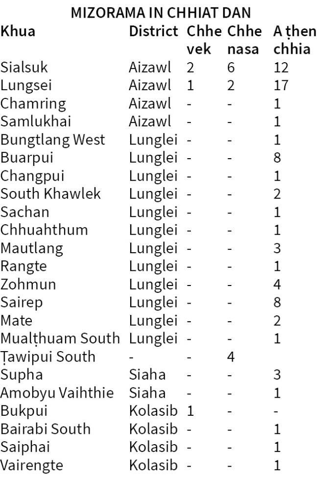 Disaster Management & Rehabilitation department aṭanga thu dawn danin, chhiatna thlen nasatna hmun Sialsukah chuan chenna in pahnih a chhe vek a, in paruk chu chhe vek lo mah se, nasa takin a chhia a, a ṭhenlai a chhia in 12 a awm. Chenna in bakah ran vulhna in 11 a chhe bawk.