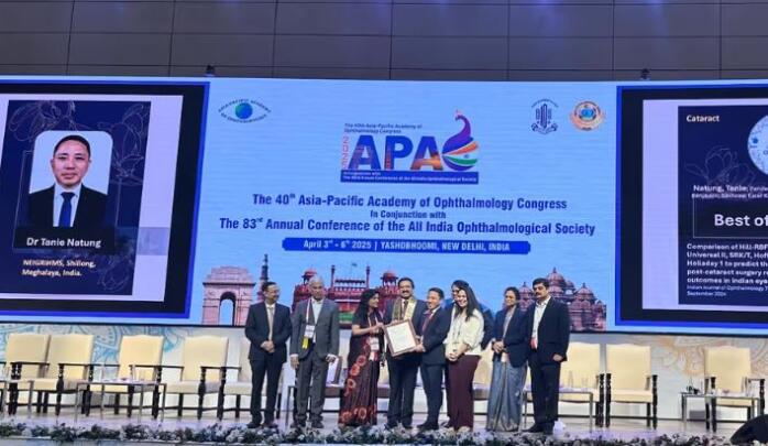 New Delhi-a All India Ophthalmological Society kum 83-na denchhena 40th Asia-Pacific Academy of Ophthalmology Congress, April 3-6 chhunga neihah Prof (Dr) Tanie Natung kaihhruai NEIGRIHMS, Shillong research team chuan ‘Best of Indian Journal of Ophthalmology Award’ an dawng.