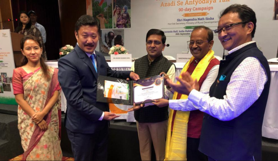 District thlanchhuah bika scheme hrang hrang thawhna kawngah Pakyong district hi a tiṭha zual 10 zingah telin, union ministry of rural department-in New Delhi-a chawimawina hlanna inkhawm a buatsaihah Pakyong district magistrate Tashi Chophel leh ADC Anupa Tamling-ten award hi an dawng a ni.
