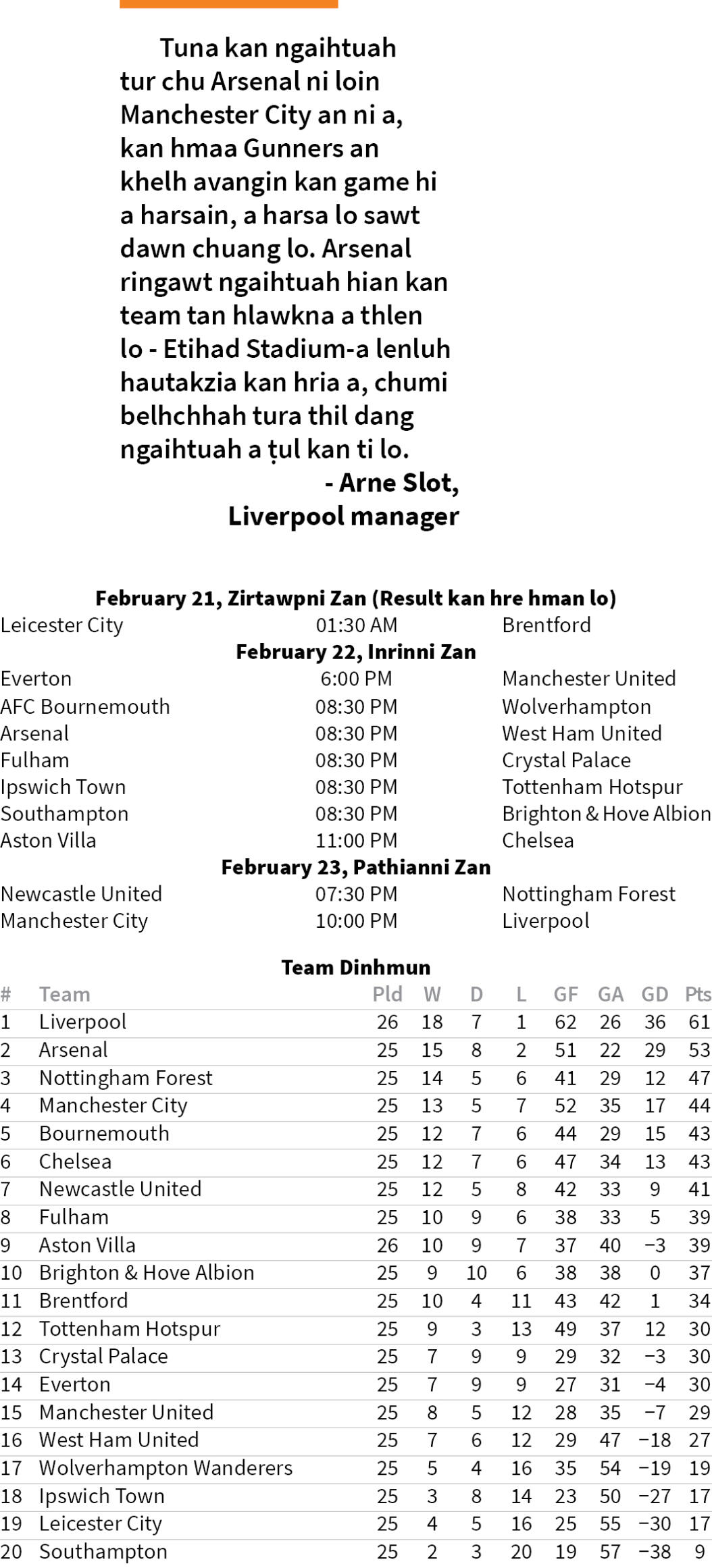 Pathianni zan dar 10:00-ah inkhel hmuhnawm bik en tur a awm dawn - Manchester City khelmualah Liverpool an lenglut dawn a, team pahnih hi milian hliam tuar tia sawi theih ve ve an ni.