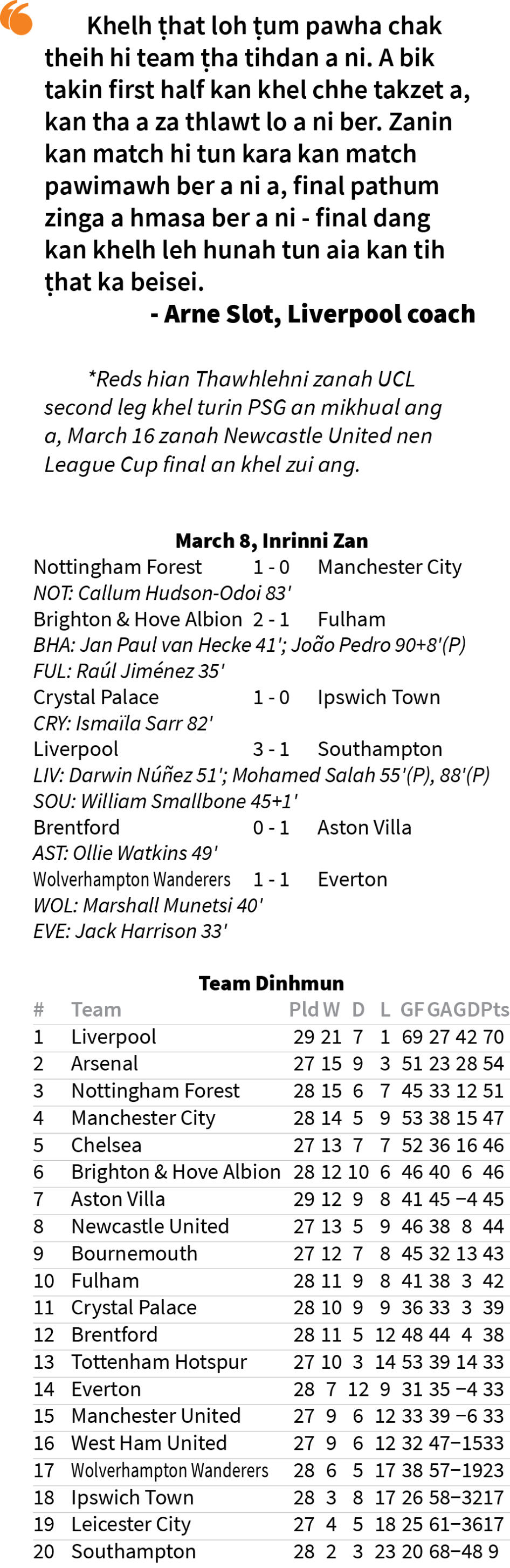 Nomawi inhlan nan a la hma deuh a ni mai thei a, mahse, champion erawh a puan ngam tawh a ni lawm ni? Liverpool chuan Inrinni zan khan Premier League-ah 3-1 in Southampton an hneh a, champion an hnaih zel.
