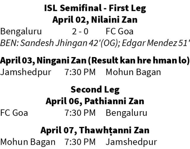 Indian Super League semifinal-ah Bengaluru chuan 2-0 in FC Goa an hneh a, second leg khelh tur a la awm avangin Goan club tan beisei bo vek erawh a la ni bik lo.
