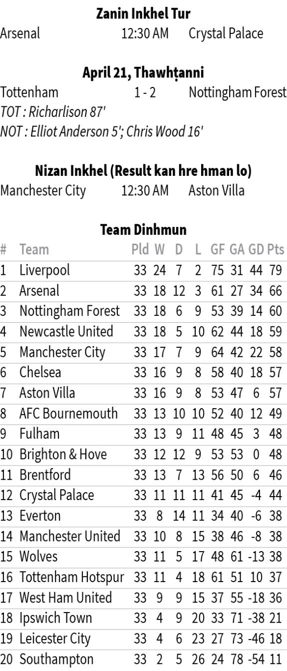 Gunners hian zanin bak chu kar tawpah match khelh tur an nei dawn lo. European football inelna sang ber hmachhawn turin inbuatsaihna hun thawl an nei thei dawn tihna a ni a, hman ṭangkai ngei pawh an tum ang.