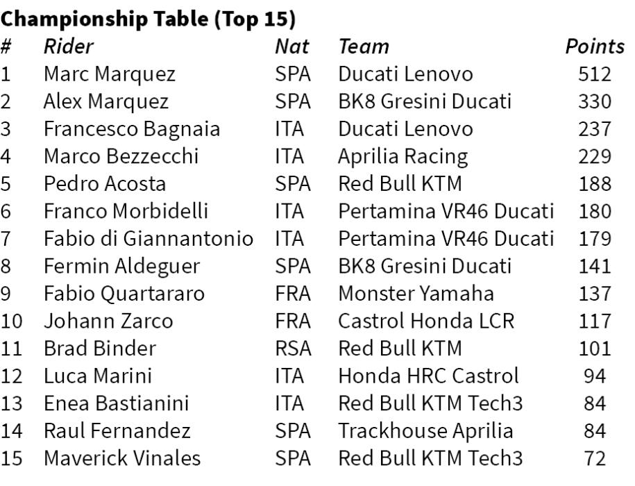 Season kal laia vawi 11 hnehna chang tawh Marquez chuan, "Kan team hian kan thawkrim em em a, tun season mai pawh ni loin season thar lo awm tur atan pawh ruahmanna hrang hrang kan nei der tawh.