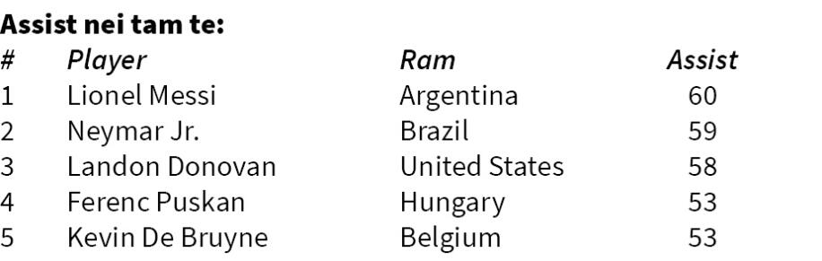 Lionel Messi chuan nimin zing khan assist vawi hnih a nei a, Argentina captain hi ram tana ṭhiante goal khung tur siamsak tam ber a ni ta, record hmasa chelhtu Neymar chu a khum nghal a ni.
