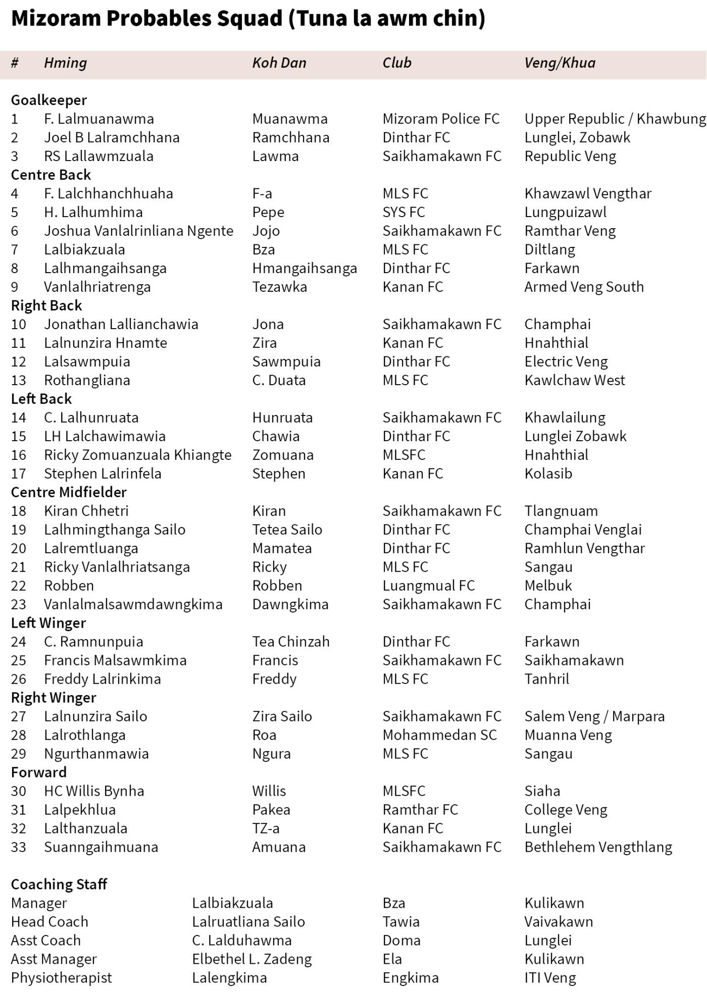 India ram football buai deuh mah se All India Football Federations-in football hmanga state inelna sang ber Santosh Trophy erawh kaltlangpui a tum a, group pawh siam fel a ni tawh. Ruahman danah chuan qualifying round hi December 15-20, 2025-ah khelh a ni ang.