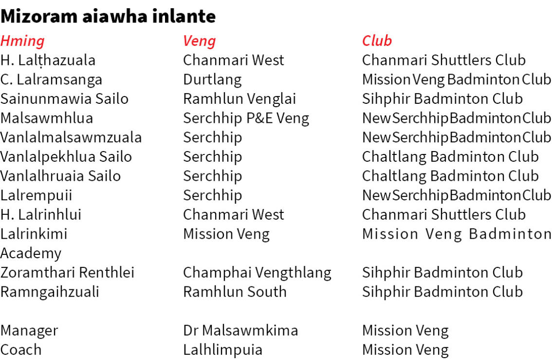Yonex-Sunrise 48th Inter State - Inter Zonal & Junior National Badminton Championship 2025 chu nimin aṭang khan Itanagar, Arunachal Pradesh-ah khelh ṭan a ni a, Mizoram tan medal beiseina a sang hle.