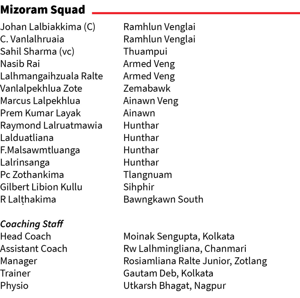Mizoram manager Rosiamliana Ralte Junior chuan, "Meghalaya hi kum lamah pawh keini ai chuan an u deuh hrim hrim. Mizoram hi chu cricket bikah phei chuan kum dik tak zelin kan khel a, keini aiin an puitling zawk," tiin Vanglaini a hrilh.