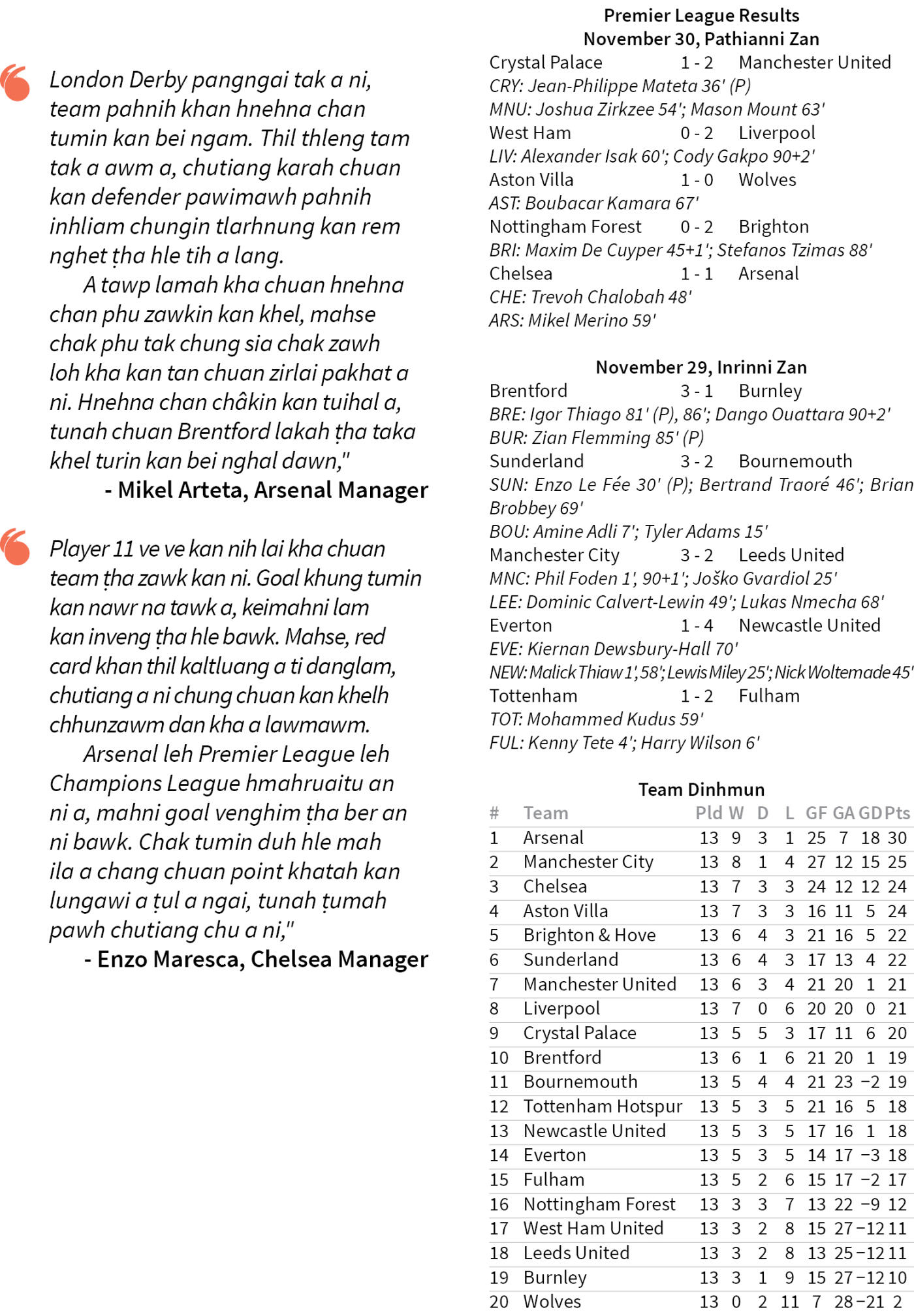 Premier League hmahruaitu Arsenal leh hun rei tak chhung player 10-a khel Chelsea 1-1 in an inhnehtawk. Mikel Arteta nauten hma an hruaina tihzau theihna remchang an bawhpelh - Blues tan point khat hmuh belh a lawmawm ve thung ang.