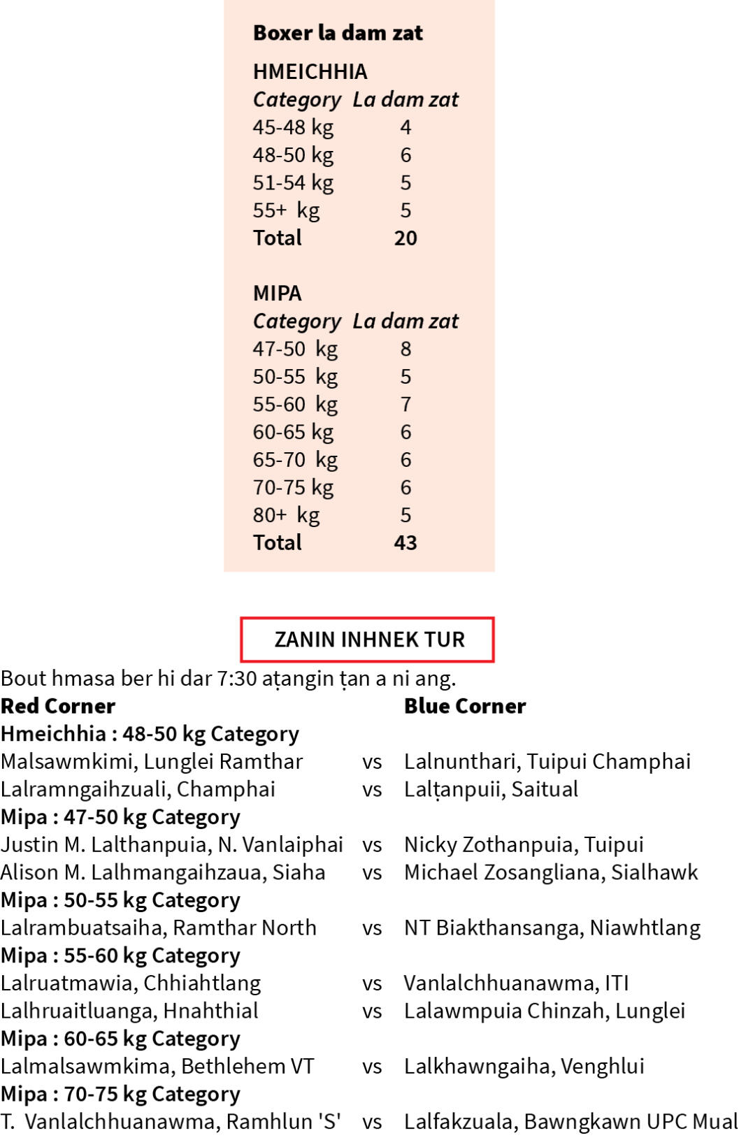Mizba Mega Boxing quarterfinal : A thiam pariat china tel pha vek an ni tawh