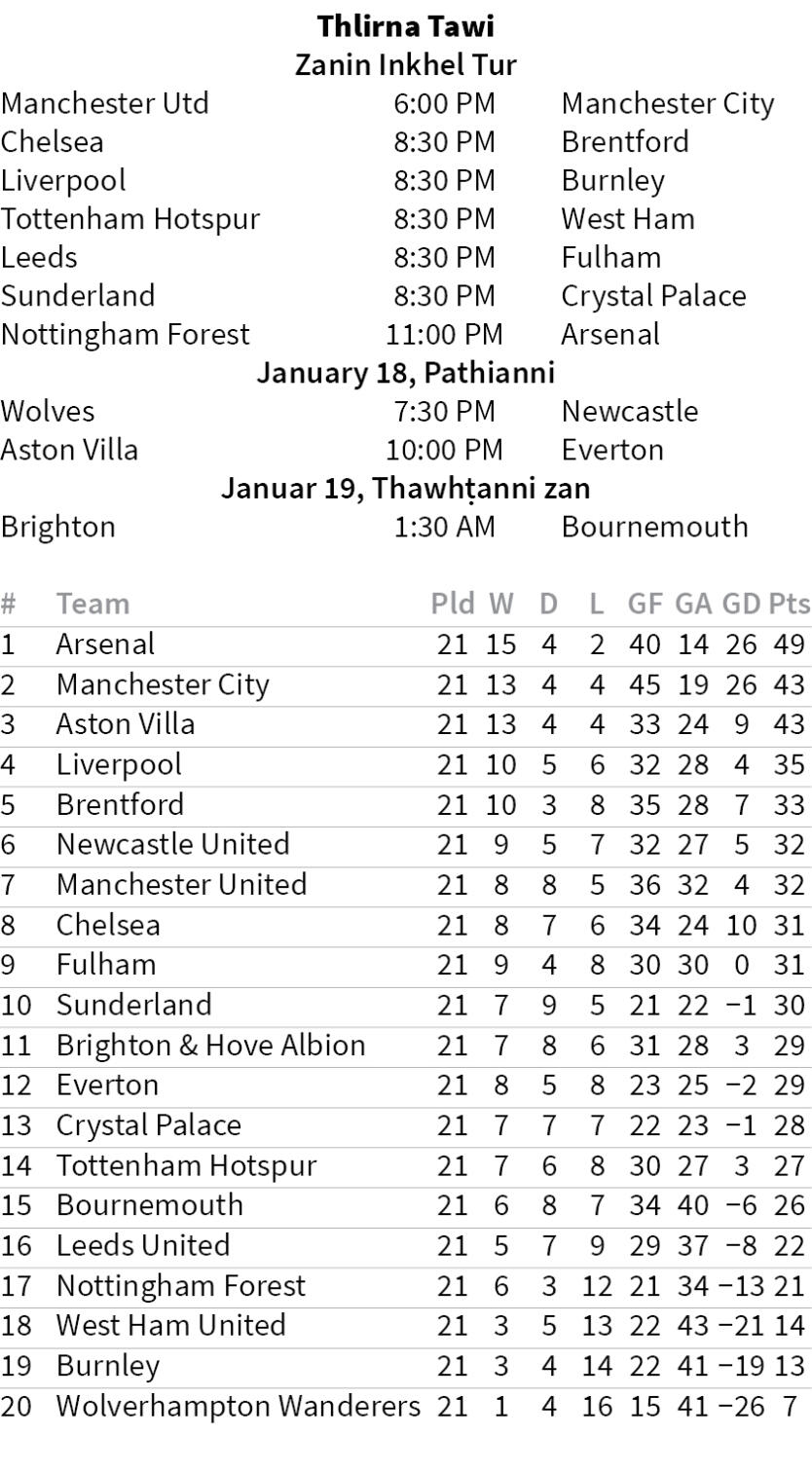Arsenal-in zanin dar 11:00 hian City Ground-ah Nottingham Forest an hmachhawn dawn. Mikel Arteta hote hian Forest hi nikum September thla khan Emirates Stadium-ah 3-0 in an sawp tawh a, table-a 17-na lakah hian point thum an hlawh chhuak lo a nih chuan an thinur ang.