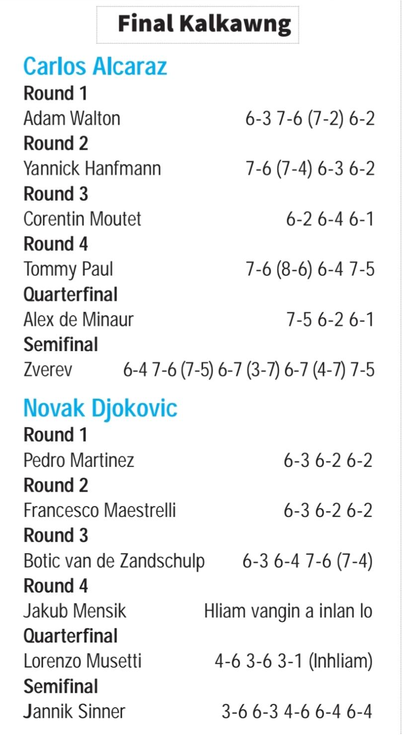 Kum 38 ni tawh mah se Novak Djokovic a la chuai mawlh lo - nimin semifinal inkhel hmuhnawmah Jannik Sinner a hneh a, Grand Slam 25 la thei awmchhun ni turin pen khat chiah pen a ngai ta.