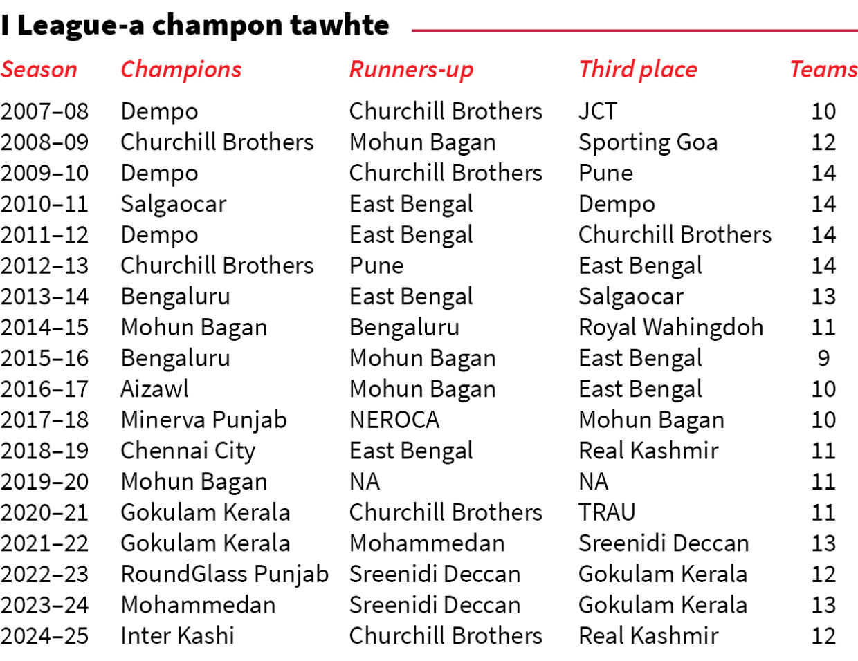 India ram football buaina avangin Indian Super League leh I League khelh hun sawn tlai a ni a, tunah chuan inelna pahnih khelh hun a chiang tawh. I League hi February 21, Inrinni aṭanga khelh ṭan a ni dawn. Kuminah tel man a san vangin AFC leh CFC ten sorkar puihna an beisei a, inelna hmachhawn tumin February 3, Thawhlehni aṭangin training an ṭan.