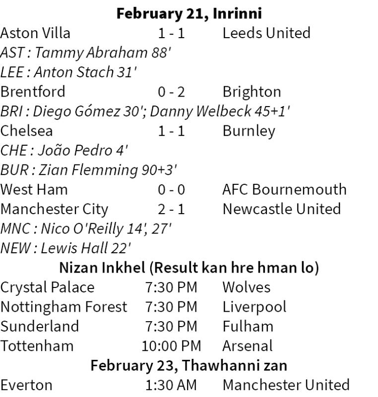 Manchester City-in Inrinni zan khan mi goal hnih hmangin Newcastle United 2-1 in an hneh a, Premier League champion kawng dik an zawh. Pep Guardiola hote hian khelh zat inangah hmahruaitu Arsenal point hnih chauhin an pha lo.