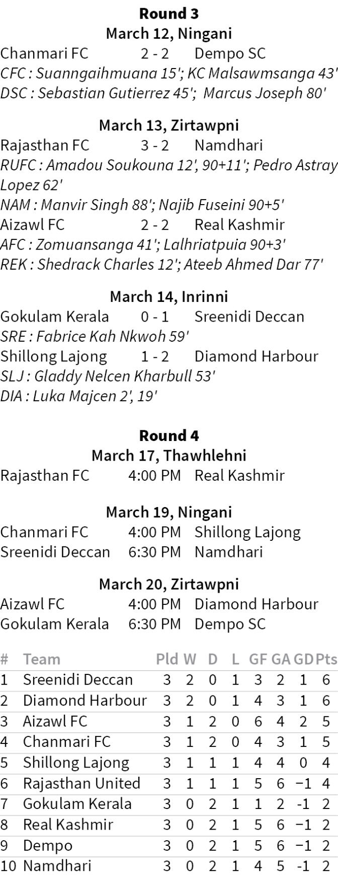 IFL round 2 zawhah Aizawl FC-in hma an hruai a, pathumna Chanmari FC nen point li ve ve an hmu. Chanmarians hian pakhatna nih theihna hun ṭha bawhpelhin Dempo SC laka inkhel an thunun hnuah 2-2 in an inhnehtawk. Aizawl FC lam tan Chanmari 'result' hi inzirna tur ni mah se an insiamrem hman lo.