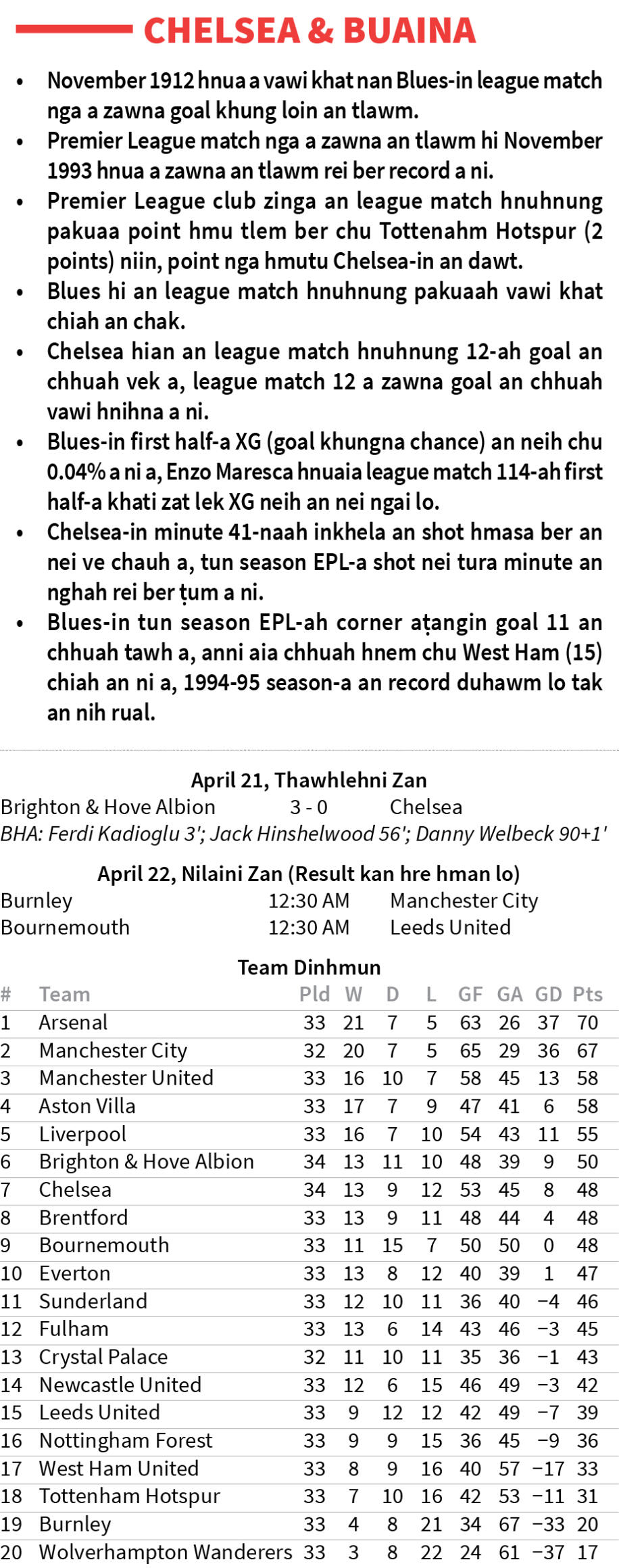 Chelsea fan-ten tun hnaia an result chhiat chhanah club neitu Blueco-te an puh a, club neitu duh lohna pawh nasa takin an lantir tawh - Enzo Maresca thlaktu Liam Rosenior erawh an bei ngai lo.