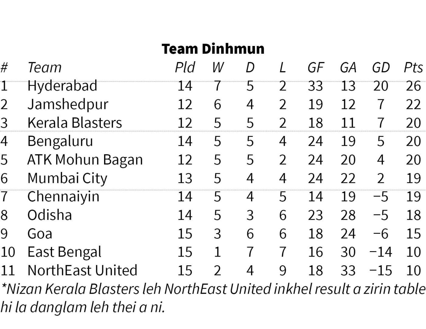 Indian Super League top four inchuh boruak pawh a 'hot' zel a, Mumbai City leh ATK Mohun Bagan-ten top four-a awmna chance an neih bawhpelhin 1-1 in an inhnehtawk.