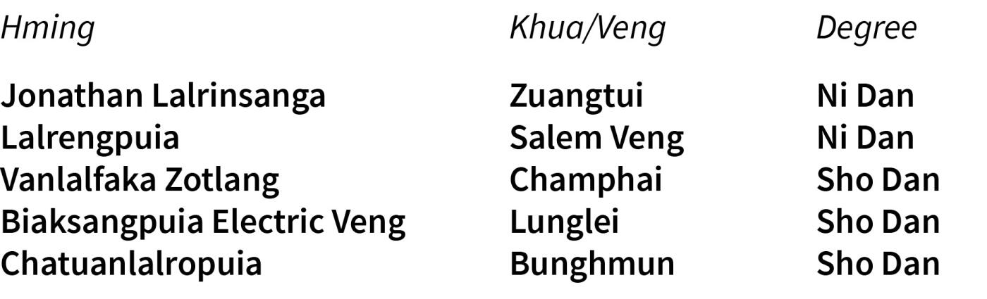 Judo Federation of India (JFI) chuan December 3-8 chhung khan National Judo Black Belt Graduation Camp & Examination (East Zone) a buatsaih a, Kolkata, West Bengal-a neih exam-ah hian Mizo panga an tling.