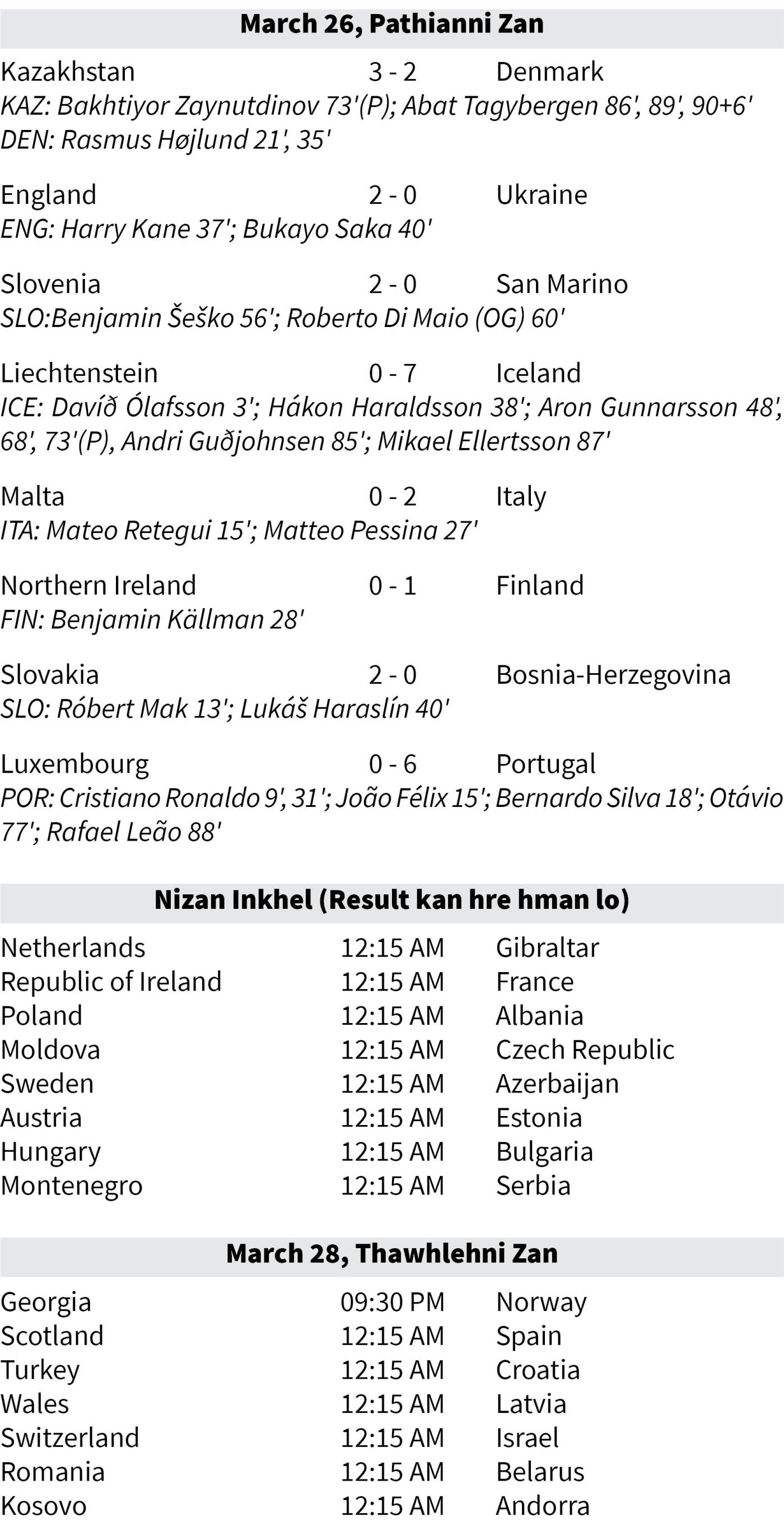Euro 2024 qualifier-a an match hnihnaah England chuan 2-0 in Ukraine an hneh a, Italy laka Three Lions tana goal khung hnem ber record siamtu Harry Kane chuan goal a khung leh ta - ram tana a goal 55-na khungtu Kane bakah hian Arsenal tana season duhawm tak hmangtu Bukayo Saka chuan goal a khung bawk.