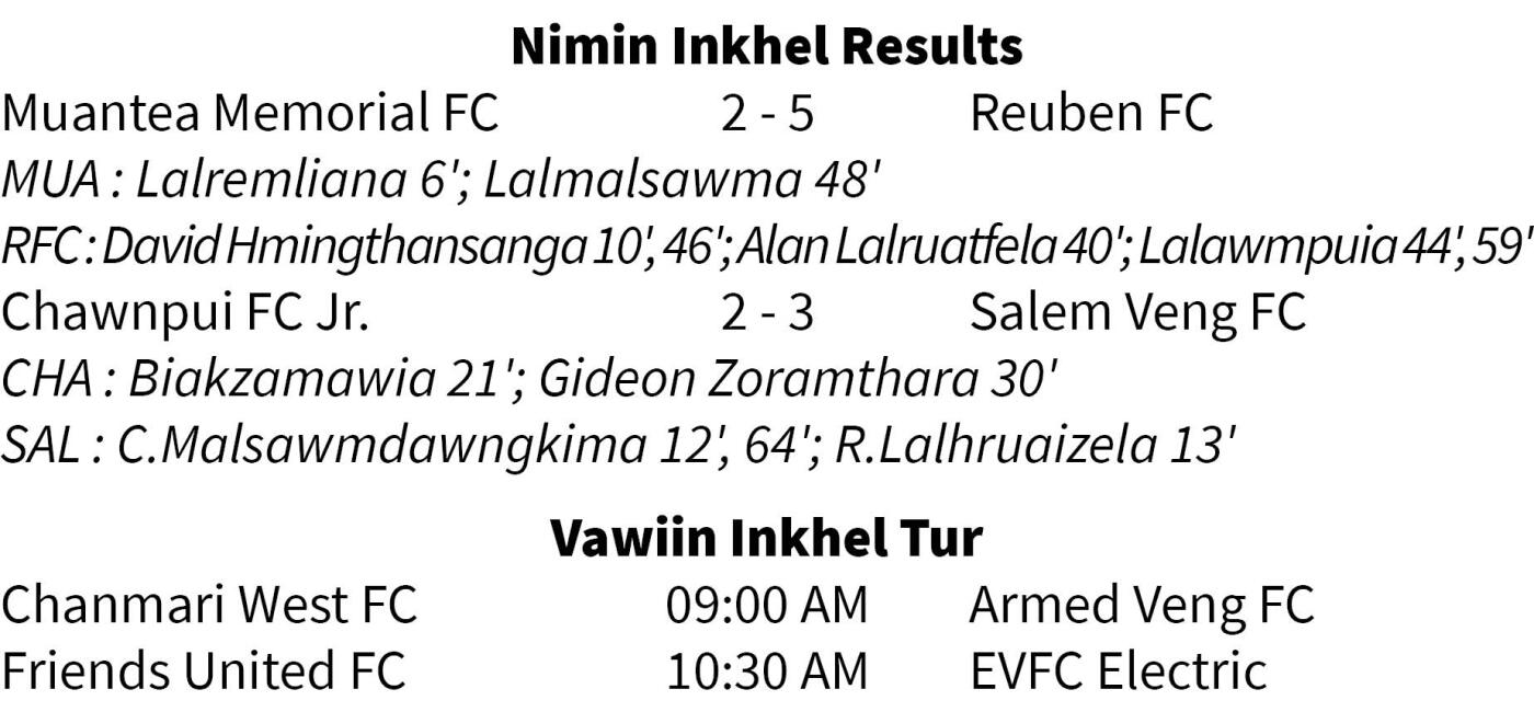 Nimin khan Reuben FC chuan an elpui Muantea Memorial FC chu 5-2 in an hneh a, group A aṭangin second round an lut.